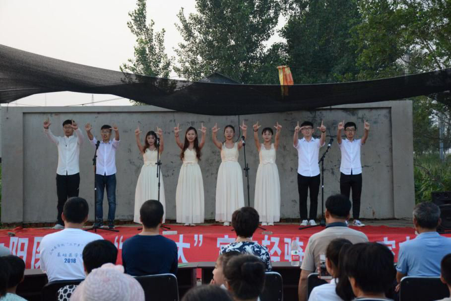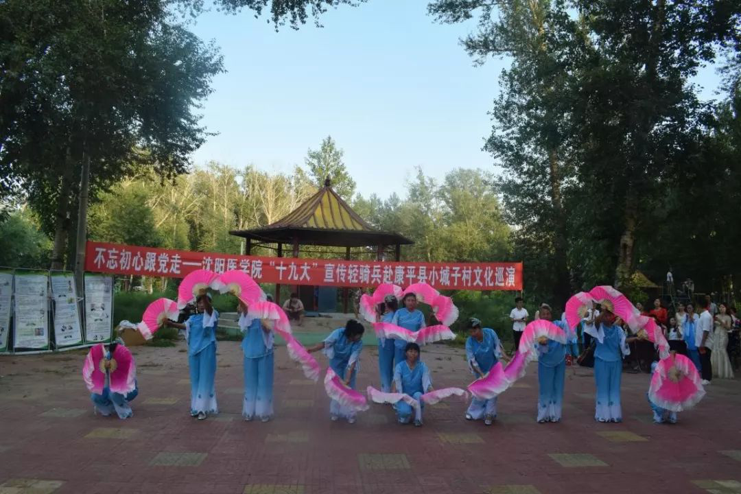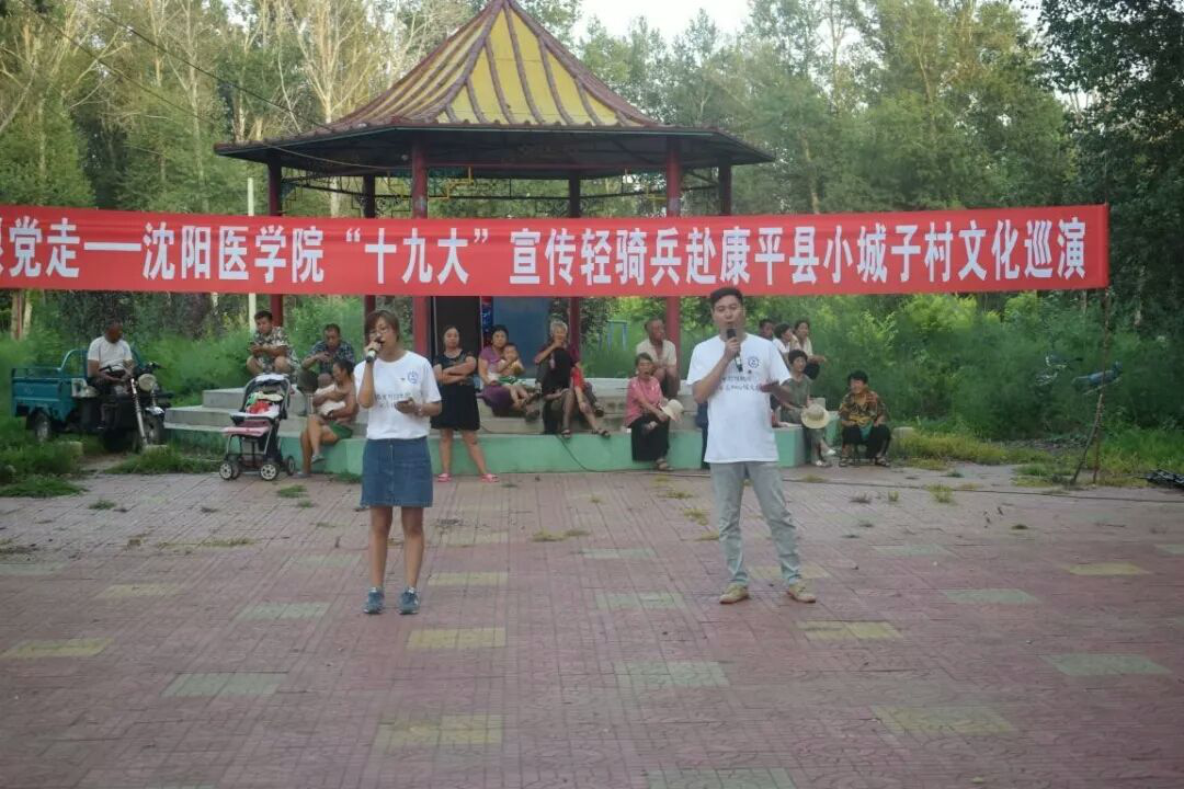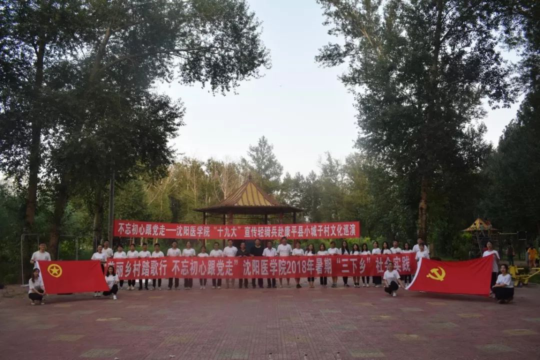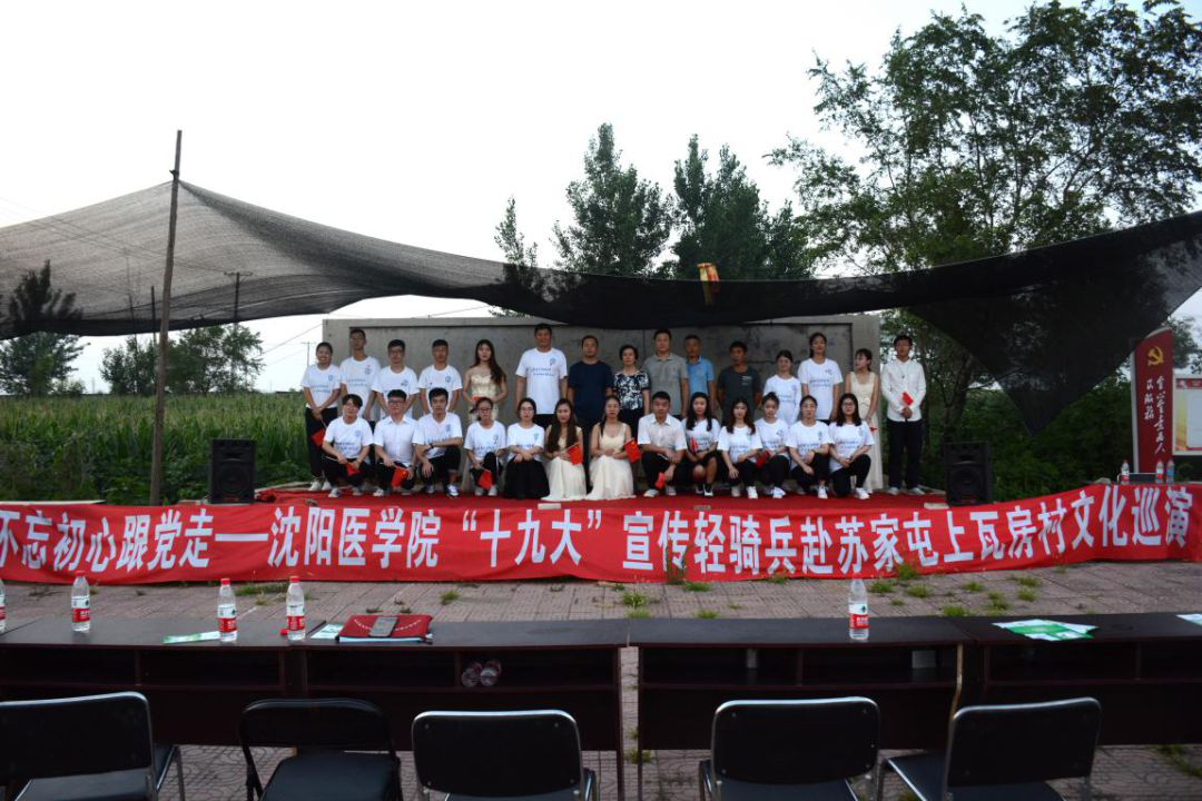 为深入学习宣传习近平新时代中国特色社会主义思想和党的十九大精神,贯彻落实《“健康沈阳”——米兰milan官方网站行动计划》,积极引导大学生利用专业所学,在社会实践中受教育、长才干、做贡献,7月23日,基础医学院按照学校部署,开展“美丽乡村踏歌行,不忘初心跟党走”十九大宣传轻骑兵巡回宣讲暨2018年暑期“三下乡”社会实践活动。基础医学院共组织40余名师生组成传播新思想,唱响新时代“轻骑兵团”,历时五天,到苏家屯区姚千街道上瓦房村,辽中区肖寨门镇妈妈街村,法库县柏家沟镇小沟村,康平县郝官屯镇新安堡村、小城子镇小城子村共五地进行巡回宣讲,活动得到米兰milan官方网站派驻村第一支书田海军、郑玉鹏、全景梁、王丰、陈岩等同志的大力支持。