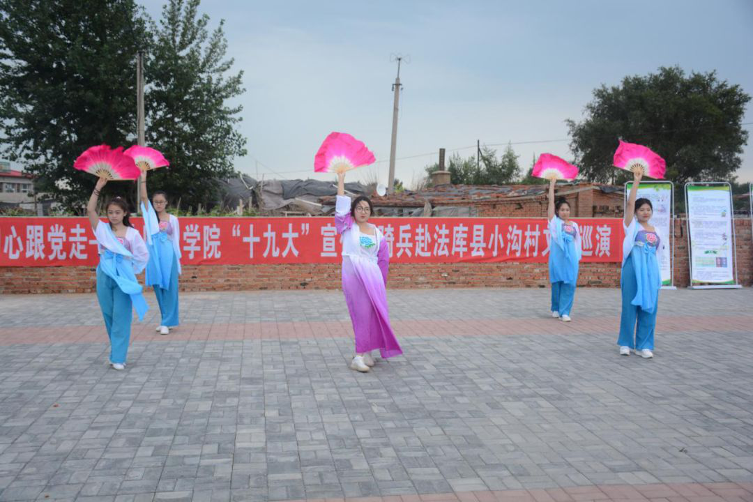 活动由走访调研、科普宣传、文艺演出三部分组成。上午,社会调研团队进行挨家挨户的走访宣传,通过问卷形式对党的十九大精神、保护环境知识、“三城联创”内容的普及情况进行调研。走访过程中,乡亲们热情地回答团队问题,用幽默风趣的本地方言介绍家乡情况。科普宣传环节,来自基础医学院大学生科技协会的科普宣传员们分别从咬伤、急性中毒、冻伤、烧伤、噎呛和溺水六方面进行了生动有趣讲解,在场村民积极参与,主动上前学习心肺复苏术,让宣传员们手把手讲解纠正,做到了真正意义上的科普走进千家万户。