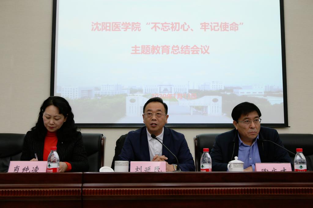 院长肖纯凌在主持会议时表示,下一步全校各级党组织和全体党员,要深入学习贯彻习近平总书记在中央主题教育总结大会上的重要讲话精神,自觉把思想和行动统一到中央部署上来,统一到市委和学院党委要求上来,牢记立德树人光荣使命,旗帜鲜明讲政治,将推进主题教育和贯彻落实党的十九届四中全会精神相结合,把主题教育成果与学校内涵式发展紧密结合起来,以“不忘初心、牢记使命”的政治坚守,以“追求卓越、只争朝夕”的奋进姿态,以“励精图治、不负韶华”的坚实行动,不断巩固扩大主题教育成果,加快实现“沈医梦”的步伐,为全面建成小康社会做出新的更大的新贡献。