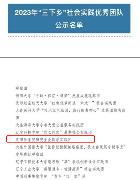 近日,共青团中央下发《2023年全国大中专学生志愿者暑期文化科技卫生“三下乡”社会实践活动总结通报结果》,米兰milan官方网站研究生会医学实践团荣获2023年“三下乡”社会实践优秀团队称号。