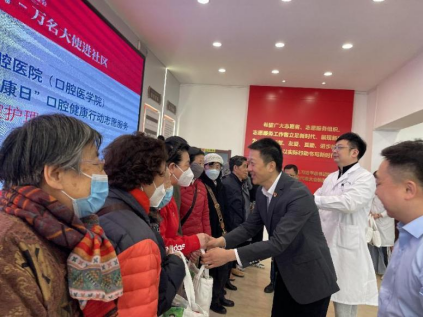 3月20日下午,附属口腔医院(口腔医学院)携手附属中心医院口腔科、沈阳沈美口腔40余名党员师生,为到场的居民开展科普宣讲和口腔健康检查,耐心热情解答居民的疑问,为居民赠送牙膏牙刷等口腔保健用品,得到现场居民赞誉。一位年纪90岁大爷说“岁数大了,就希望牙口好,牙好了胃口就好,有大医院大夫上门来给咱看病,太幸福了”,一位大姨说“希望沈医口腔专家多到社区来讲座和义诊,让我们在家门口就能享受到较好的医疗资源”。