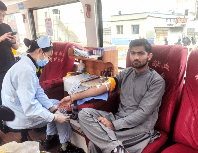 接到通知后,国际教育学院立即号召全体在校留学生踊跃为患者捐献血液。来自巴基斯坦的2021级1班学生飞游第一时间联系辅导员老师,表示自己与患者血型吻合,自愿献血。在校园献血车上,正值斋月期的飞游毫不犹豫地说“我捐献400毫升”!2021级巴基斯坦学生云帆同样主动来到校园献血车献血400毫升,虽不是稀有血型,但也希望这份跨越国界的汩汩热血能够有机会帮助到有需要的人。