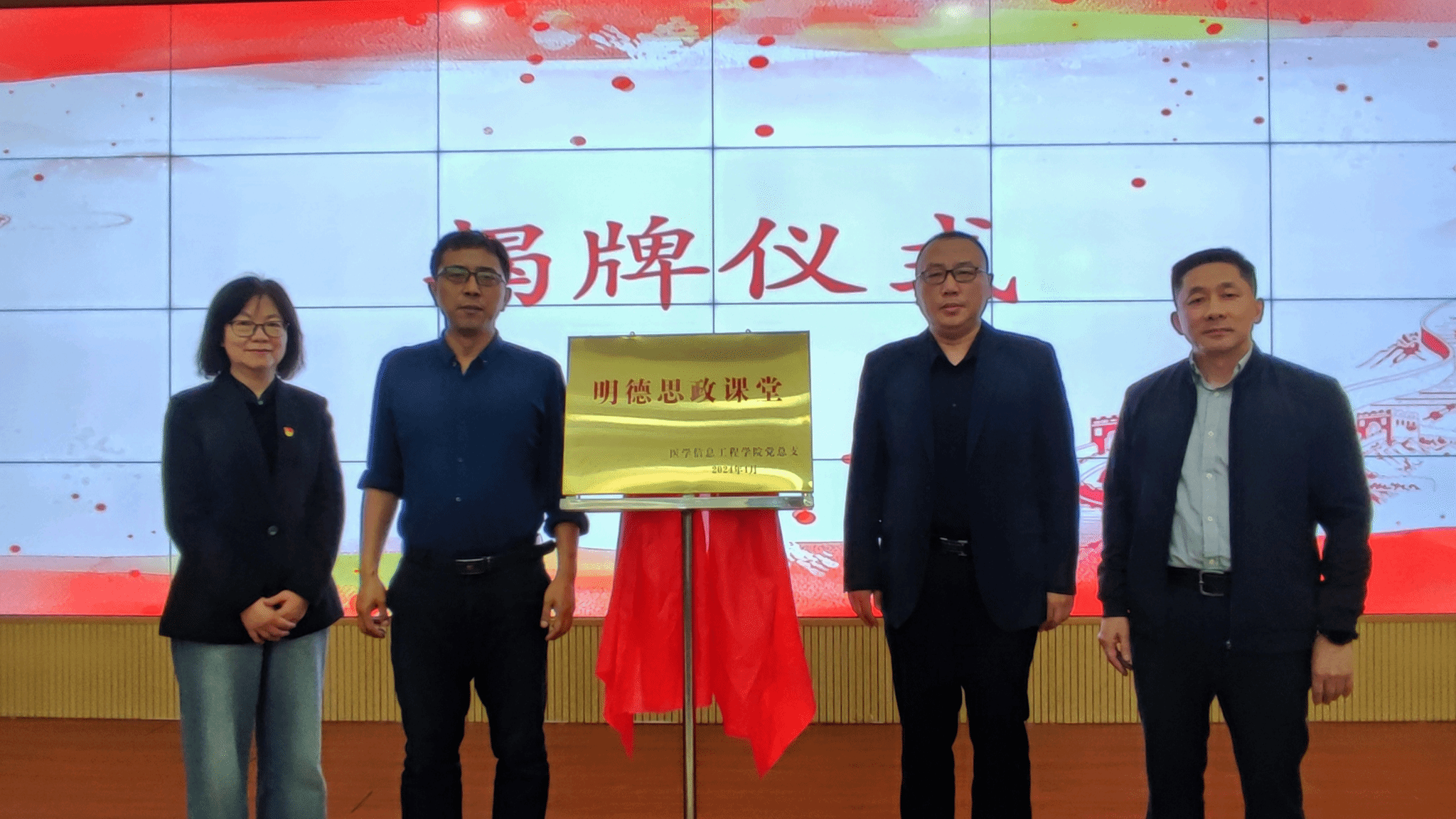 活动中,全体参会人员观看了创立明德思政课堂的宣传片,医学信息工程学院党总支书记宣读了明德思政课堂实施方案,详细阐述了该课堂的重要意义和实施计划。学生代表和教师代表依次发言,分享了自己对思政教育的理解。医学信息工程学院副院长为讲师团教师代表颁发聘书。各位领导、嘉宾共同为医学信息工程学院明德思政课堂揭牌。