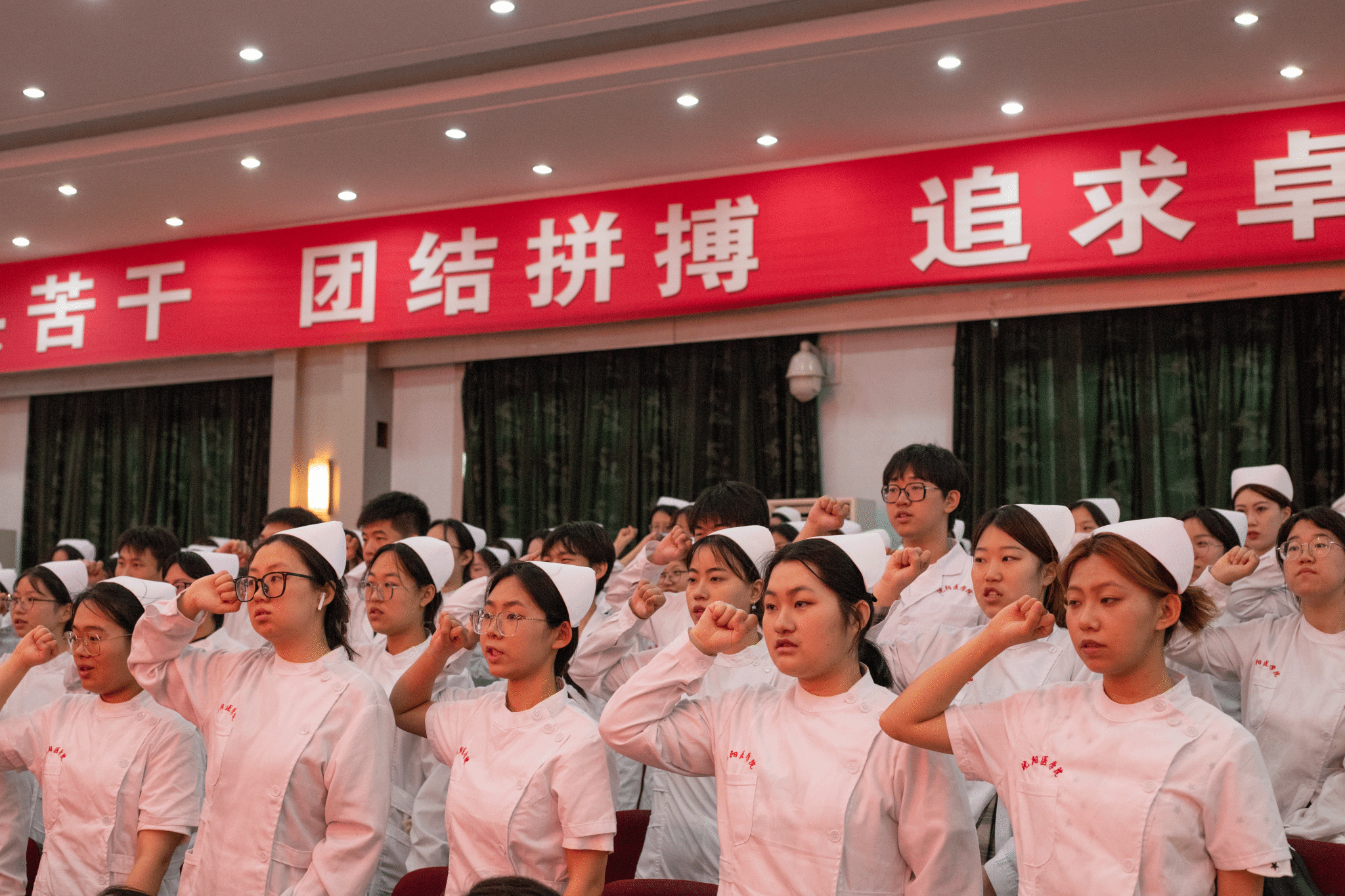 授帽仪式结束后,护士们举起右拳庄严宣誓,在坚定的宣誓声中,感受护理人的精神。