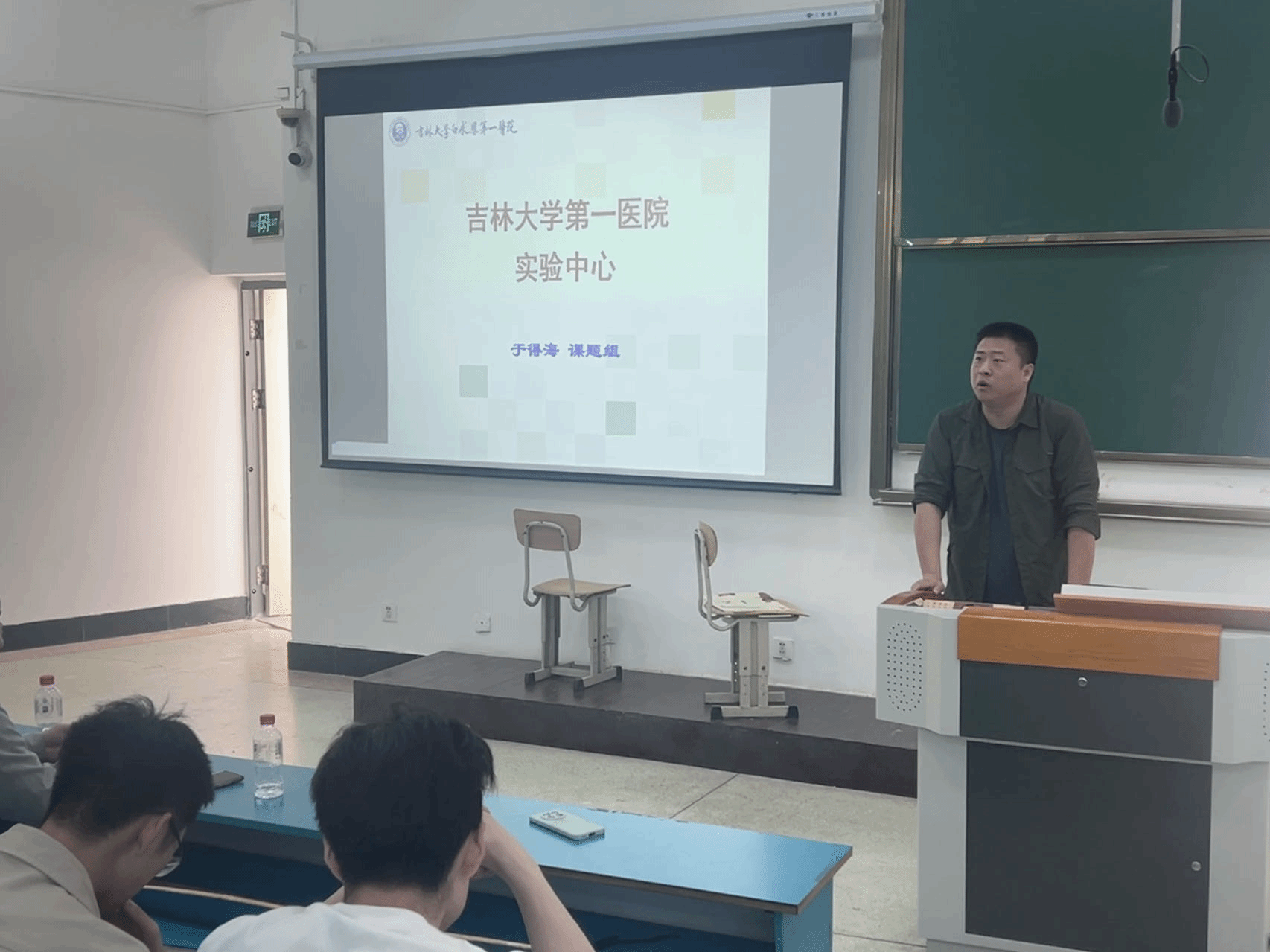 会上,李雪峰导师展示了吉林大学转化医学研究院的宣传视频,主要介绍了转化医学研究院的基础设施,师资力量,科研方向,硬件设施等内容。