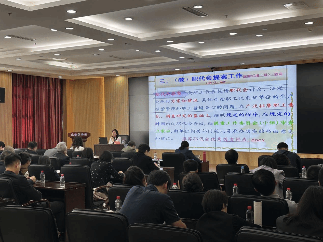 杨亚新同志结合《学校教职工代表大会规定》从教代会的性质和职权出发,深入浅出地讲解了如何当好教代会代表、怎样履行代表职责、提出高质量提案等。同时详细梳理了教代会代表提案工作的规范要求和工作流程,着力提高代表们对提案工作的重要性和严肃性的认识。培训内容结合了大量提案案例,既有理论研究,又有实践经验。