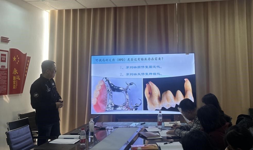 随后,汪大鹏系统介绍了近年来口腔修复学领域的最新研究成果和应用进展。重点讲解了可摘局部义齿(RPD)原理及临床应用,并通过案例展示分析了其在临床应用中的优劣势。他还展望了口腔修复学的未来发展趋势,指出智能化、个性化和微创化将成为该领域的重要方向。
