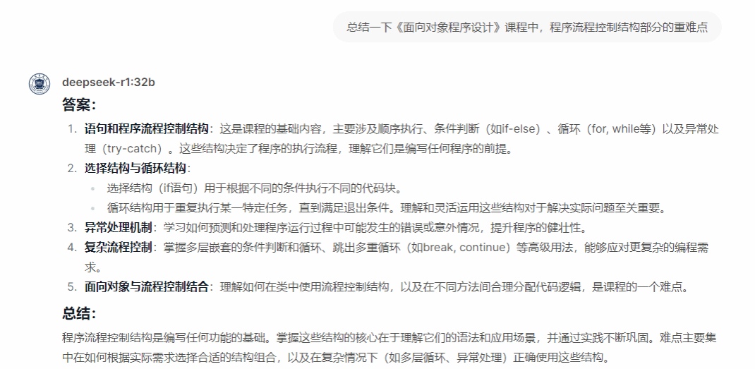 通过DeepSeek-R1模型与RAGFlow知识库的结合,医学信息工程学院成功构建了智能化的教学辅助系统。该系统不仅能够为学生提供精准的课程知识解读和教学资源推荐,还能通过自然语言交互方式,为学生提供个性化的学习指导和答疑服务。此外,系统还具备教案辅助生成、教学材料检查等功能,极大的提升了教师备课效率。