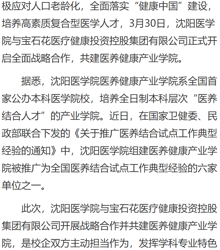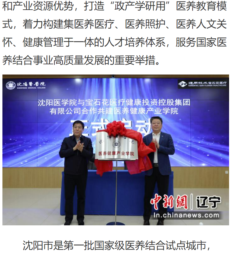 中国新闻网:沈医与宝石花医疗集团共建医养健康产业学院