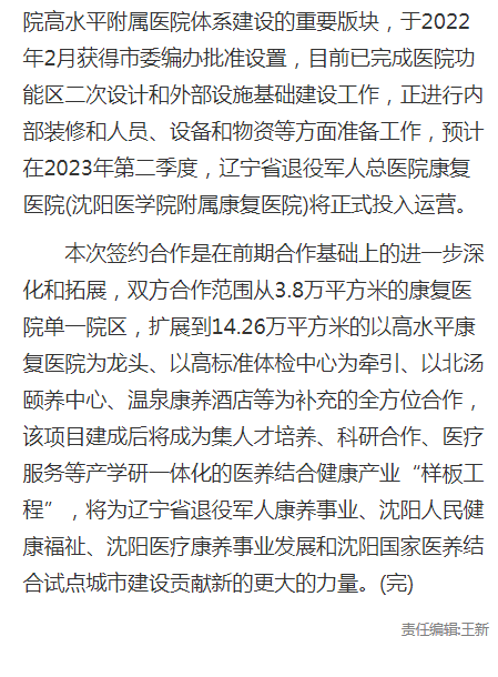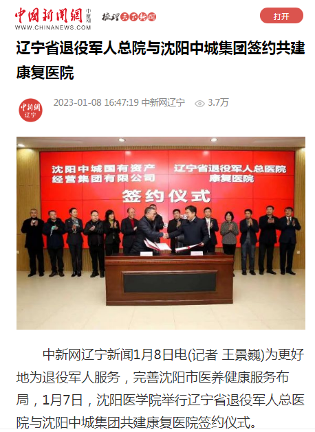 中国新闻网:辽宁省退役军人总院与沈阳中城集团签约共建康复医院