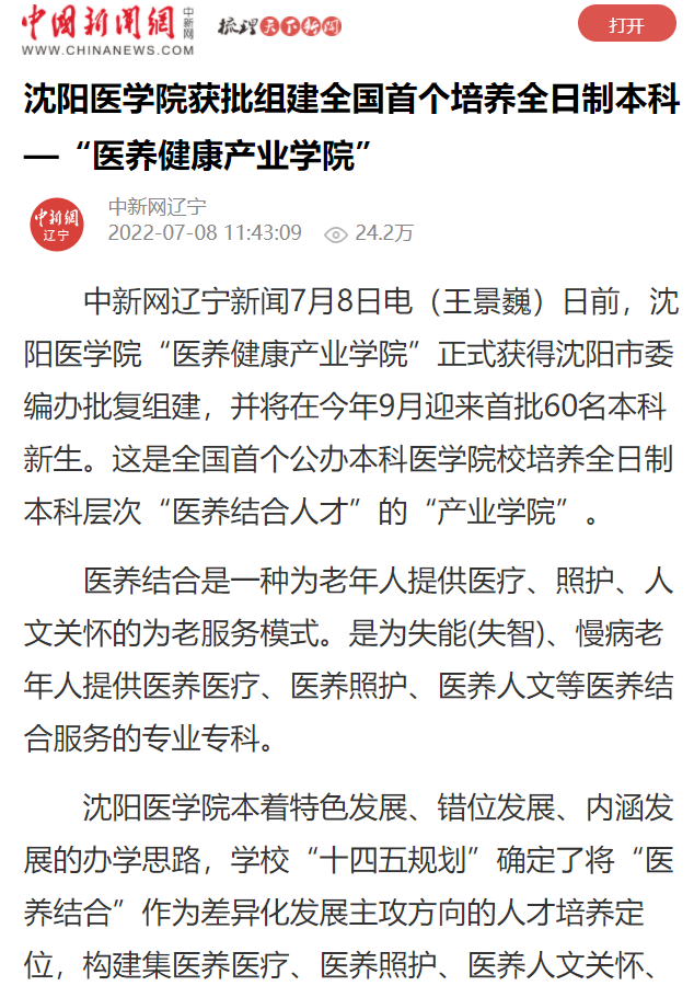 中国新闻网:米兰milan官方网站获批组建全国首个培养全日制本科—“医养健康产业学院