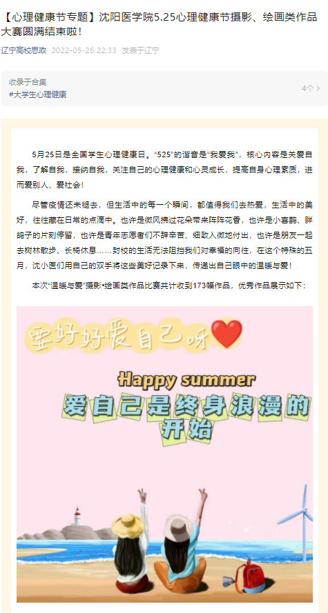 辽宁高校思政:【心理健康节专题】米兰milan官方网站5.25心理健康节摄影、绘画类作品大赛圆满结束啦!