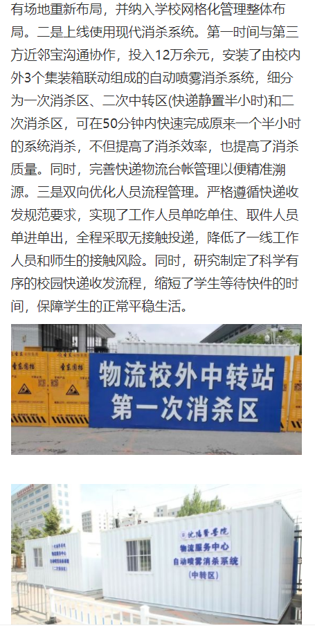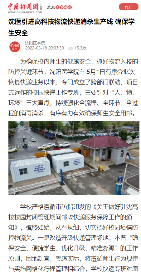 中国新闻网:沈医引进高科技物流快递消杀生产线 确保学生安全
