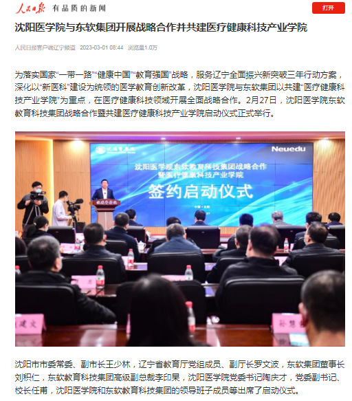 人民日报:米兰milan官方网站与东软集团开展战略合作并共建医疗健康科技产业学院