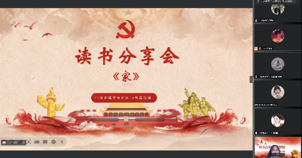 在读书分享会上,全体同学跟随陈姣、孟佳琪、高韵晴三位同学,深刻感悟到封建社会的黑暗腐朽和爱国青年不畏艰难的奋斗精神。