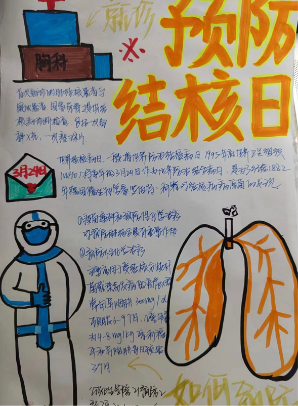 本次活动主要以海报大赛的形式举行,同学们积极参与创作,宣传结核病相关知识。参赛同学用丰富的色彩和简洁的文字使结核病相关知识展现的更加直观和形象。