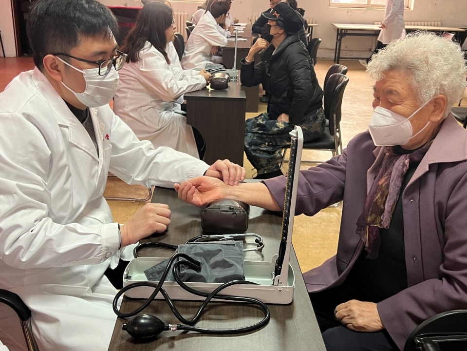 战祥毅老师和刘越老师通过中医诊断方法“望、闻、问、切”,认真探查居民们的身体健康状况,为问诊居民提供详细的养生方案及治疗方法。与此同时,学生志愿者为居民们热心介绍食疗保健和穴位保健的有关知识,并为每一位参加科普宣讲的居民准备了中草药香囊。