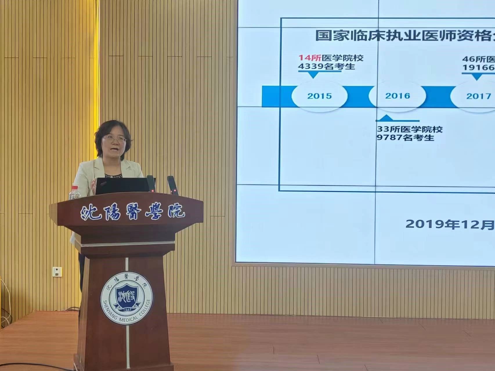 近日,教务处邀请华中科技大学同济医学院副院长厉岩教授就临床医学专业分阶段统一考试质量分析及反馈改进开展讲座培训。副校长李荣梅及相关教学单位负责人参加会议。会议由教务处处长张忠主持。